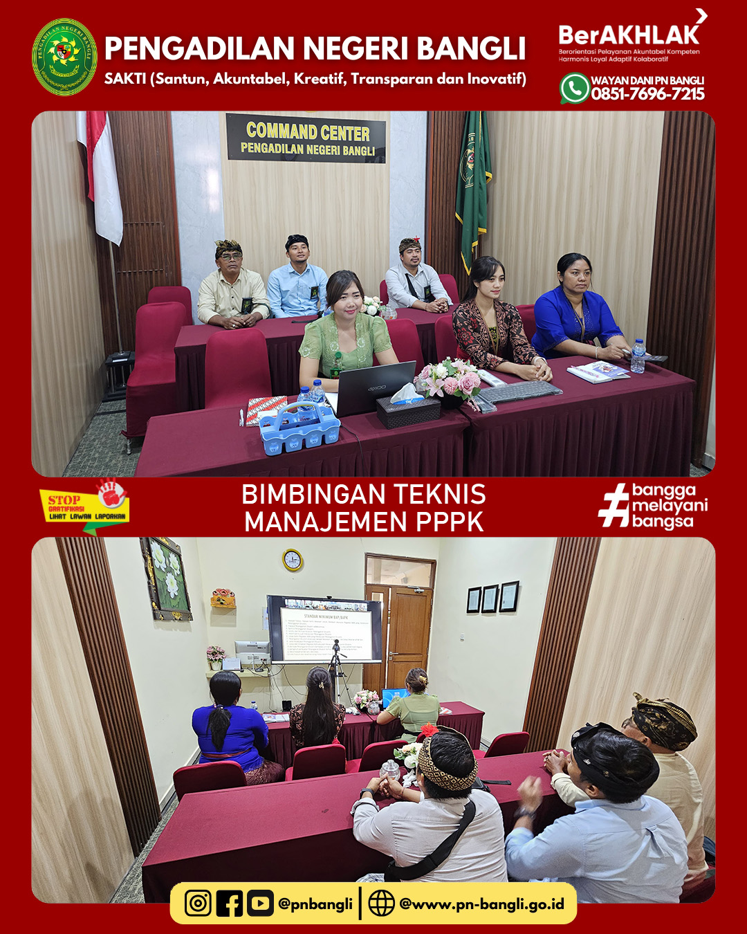 BANGLI - Kamis, 27 November 2025 pukul 08.30 WIB s.d. Selesai. Kasubbag Kepegawaian dan Para PPPK Pengadilan Negeri Bangli mengikuti Kegiatan Bimbingan Teknis Manajemen PPPK.