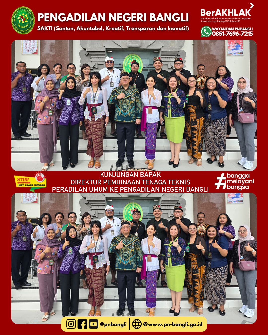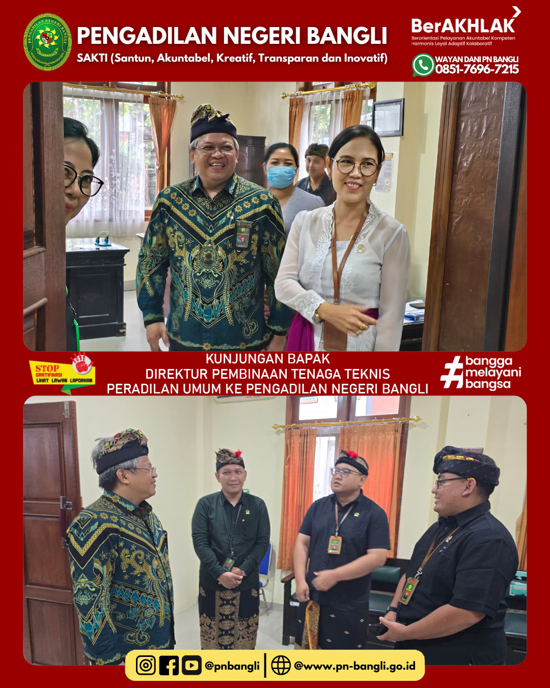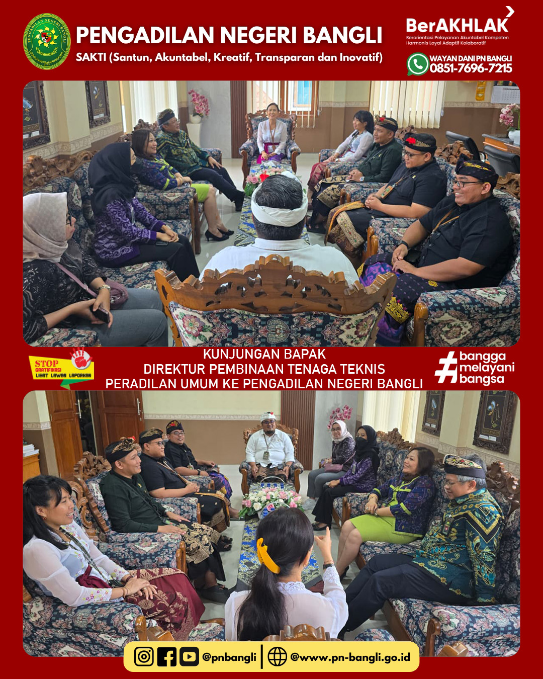 BANGLI - Kamis, 23 Oktober 2025, Pengadilan Negeri Bangli menerima kunjungan Direktur Pembinaan Tenaga Teknis Peradilan Umum, Bapak Hasanudin, S.H., M.H.