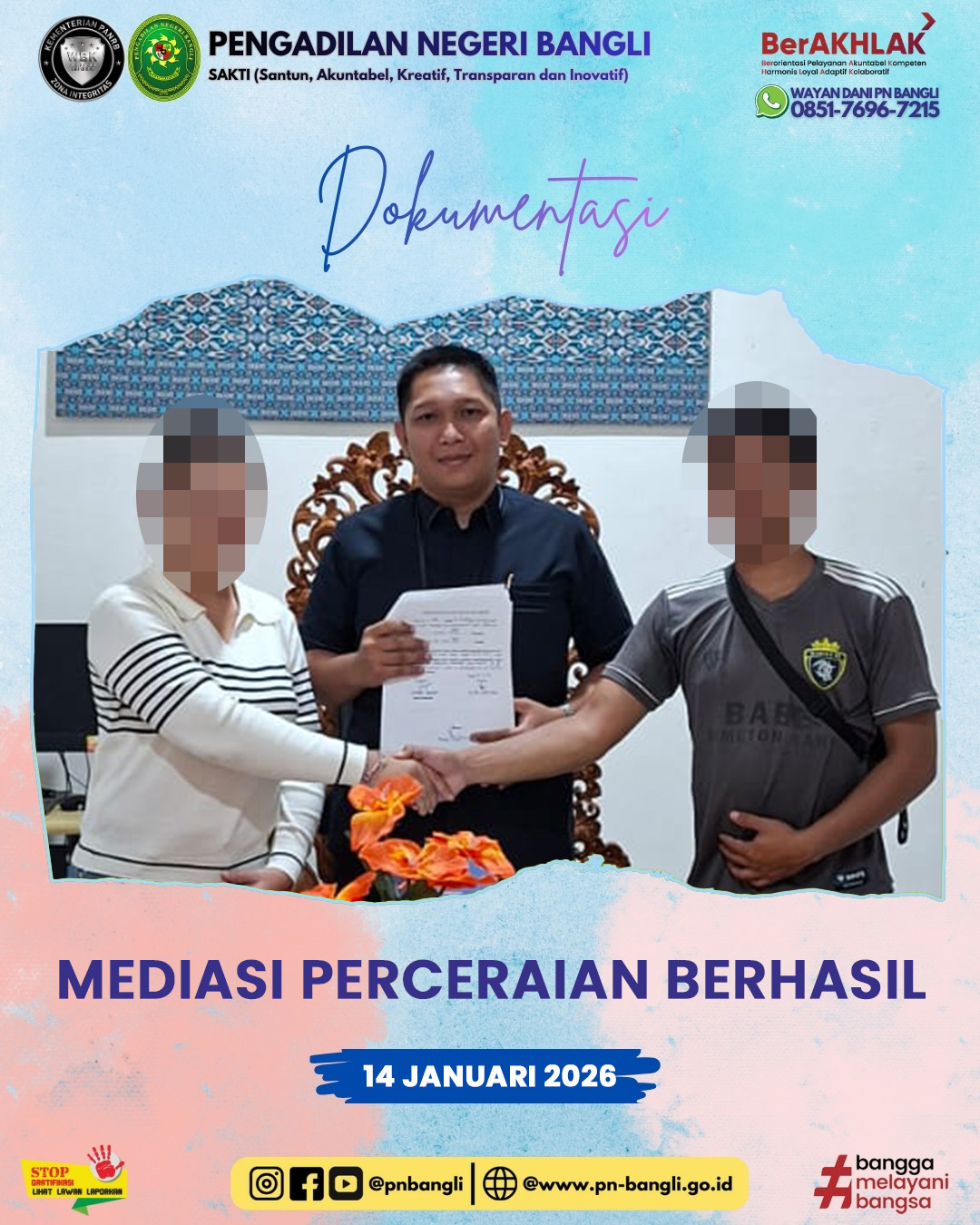 Keberhasilan mediasi dalam perkara ini adalah yang pertama bagi Pengadilan Negeri Bangli di tahun 2026.