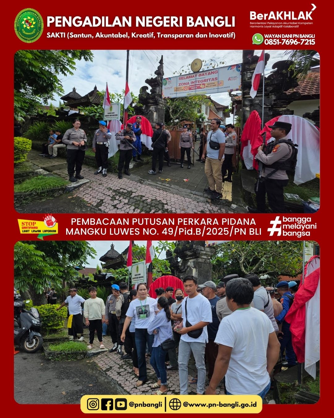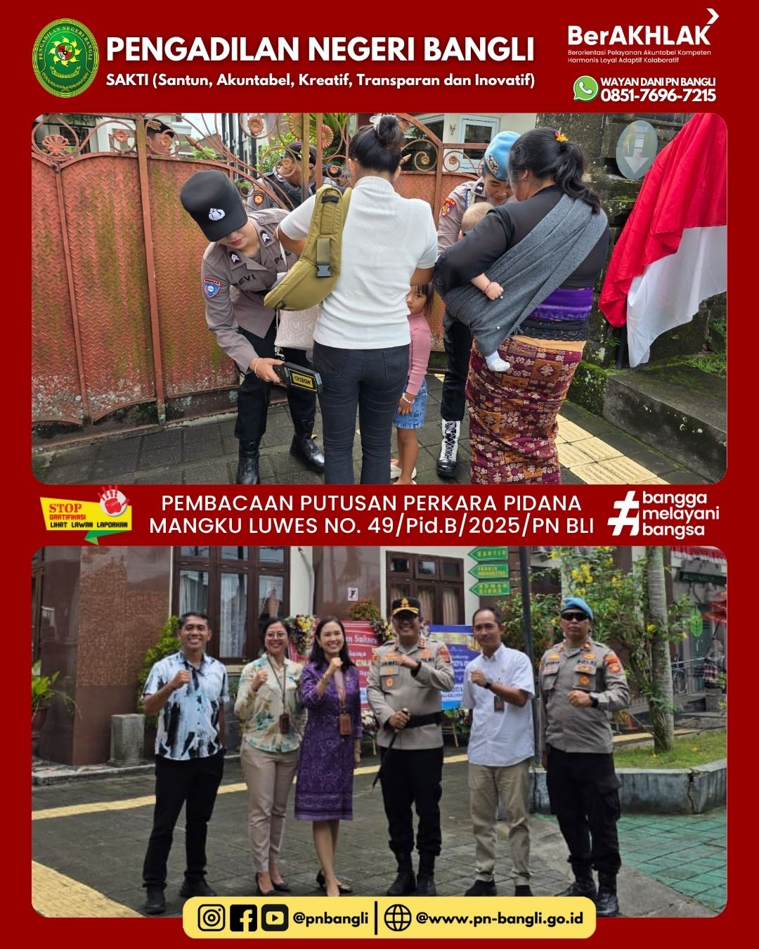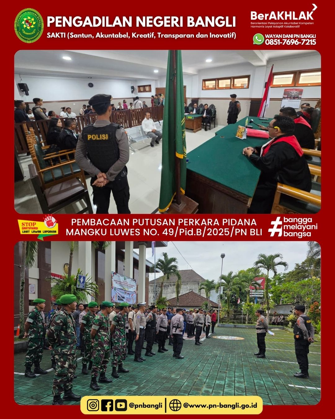 Pembacaan Putusan Perkara Pidana Mangku Luwes No. 49/pid.b/2025/pn Bli