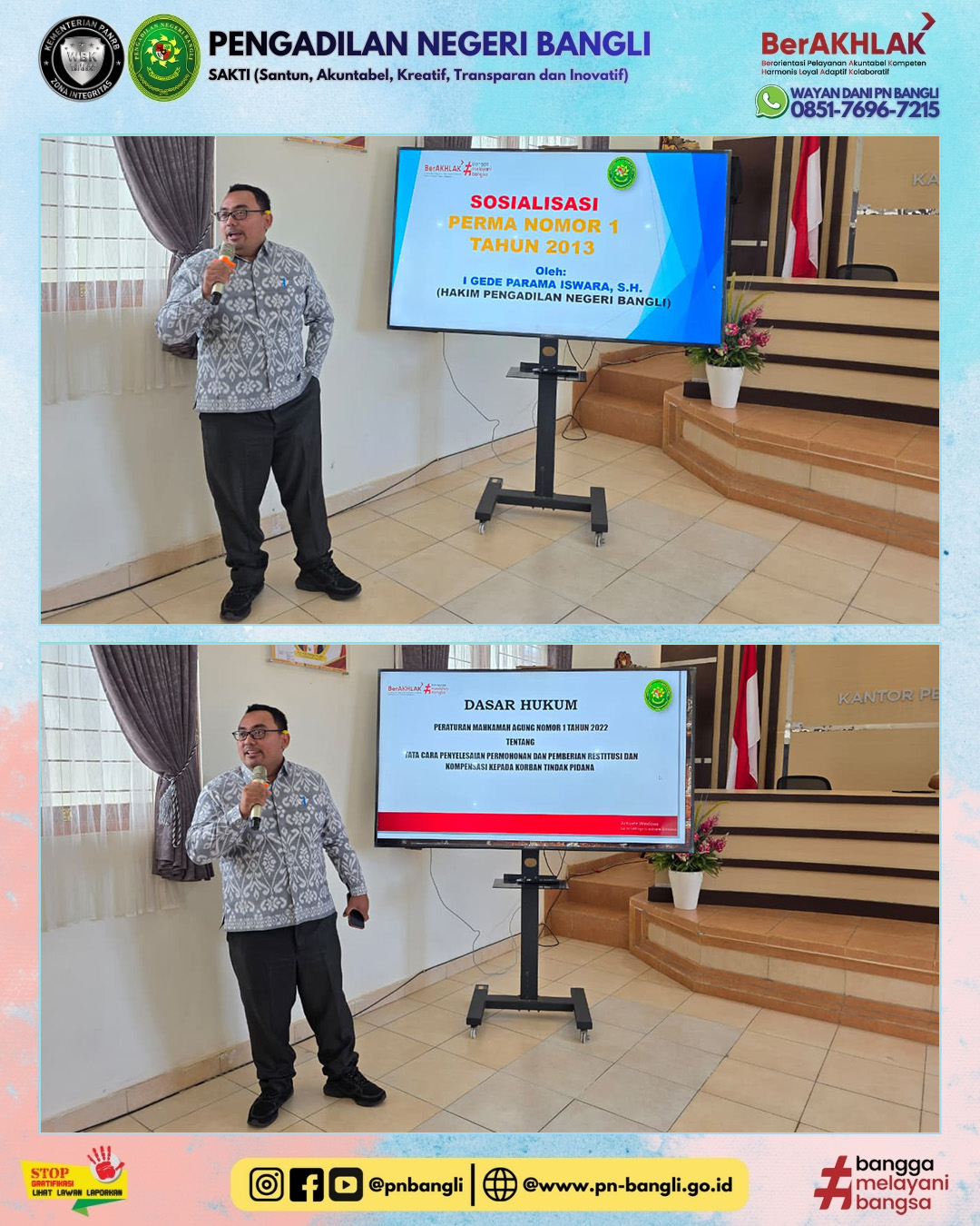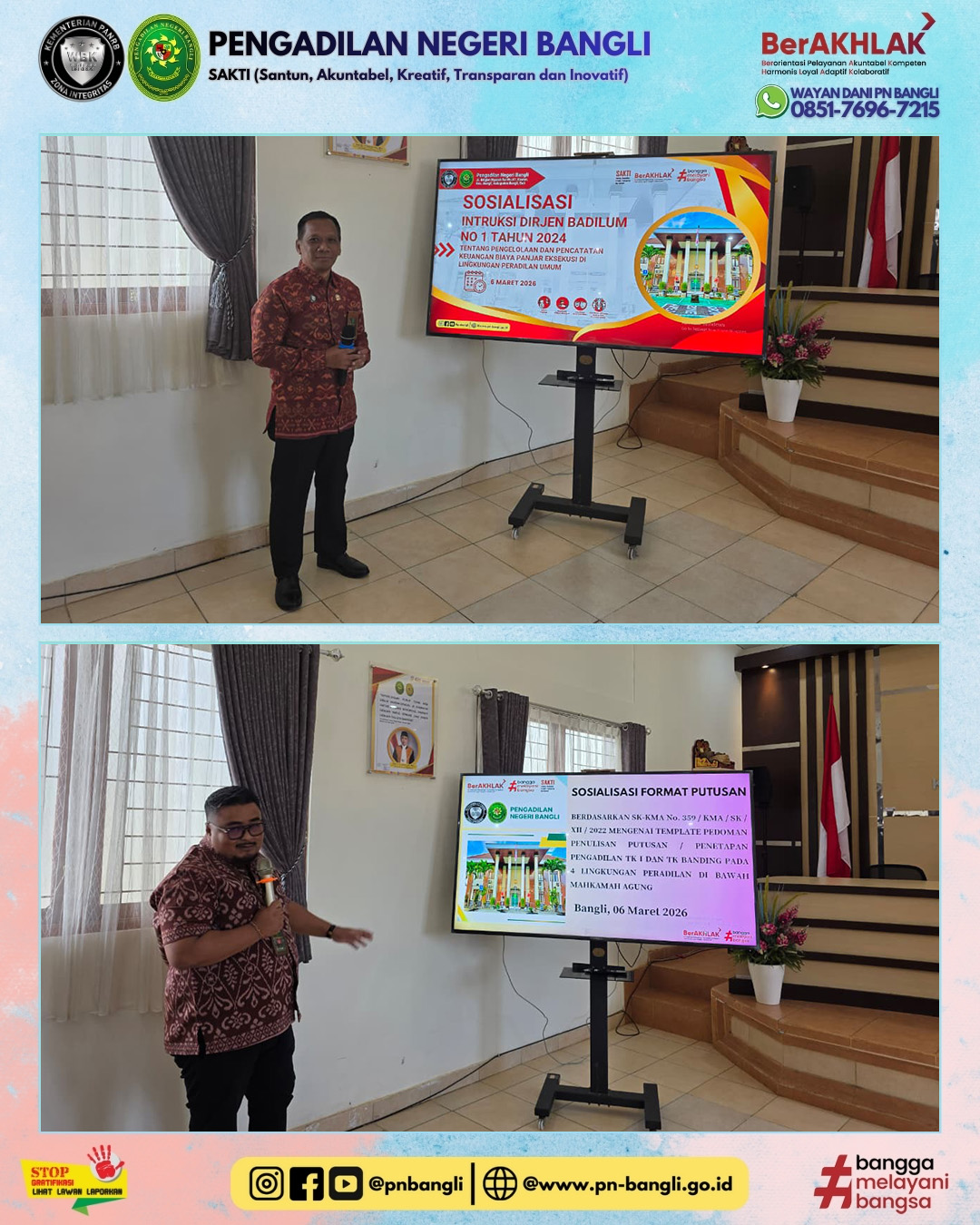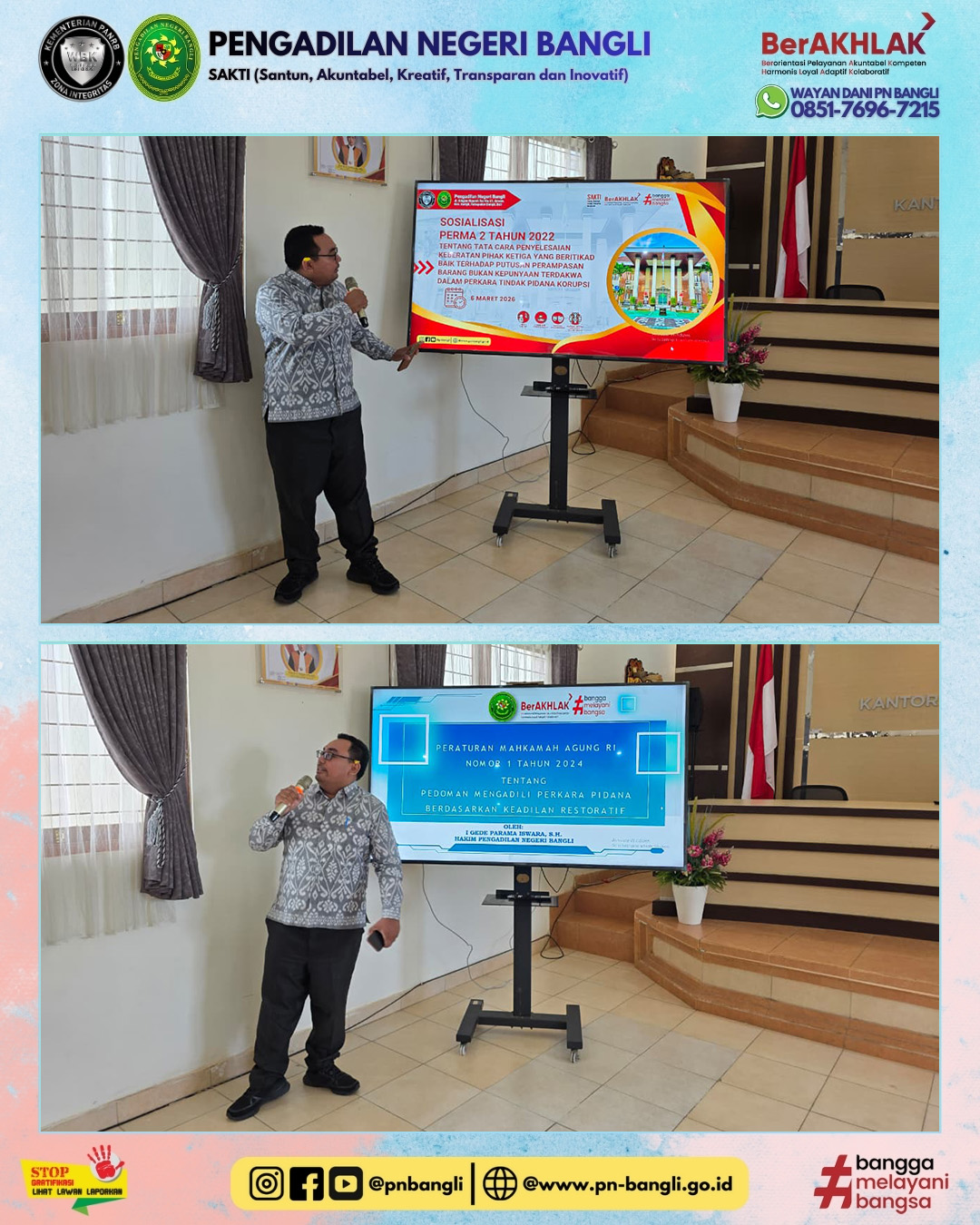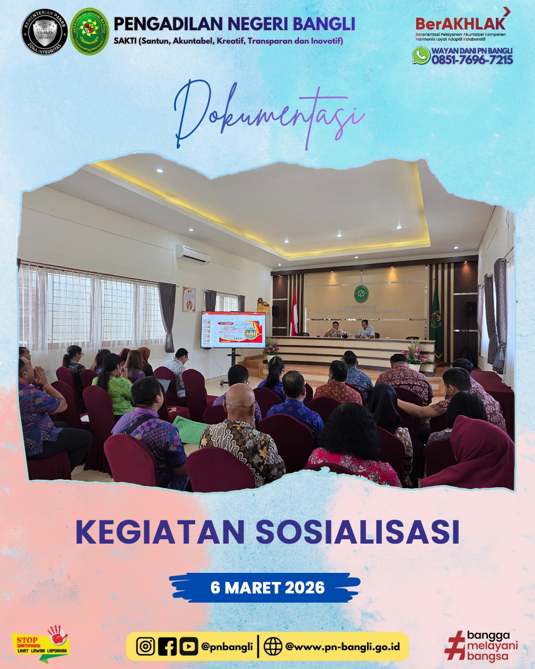 BANGLI - Jumat, 6 Maret 2026. Pengadilan Negeri Bangli telah melaksanakan beberapa sosialsiasi meliputi :